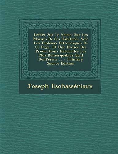 Lettre Sur Le Valais: Sur Les Moeurs de Ses Habitans; Avec Les Tableaux Pittoresques de Ce Pays, Et Une Notice Des Productions Naturelles Les Plus ... Qu'il Renferme ... - Primary Source Edition PDF Download or read online here in PDF or EPUB. Please click button to get Lettre Sur Le Valais: Sur Les Moeurs de Ses Habitans; Avec Les Tableaux Pittoresques de Ce Pays, Et Une Notice Des Productions Naturelles Les Plus ... Qu'il Renferme ... - Primary Source Edition book now. All books are in clear copy here, and all ...